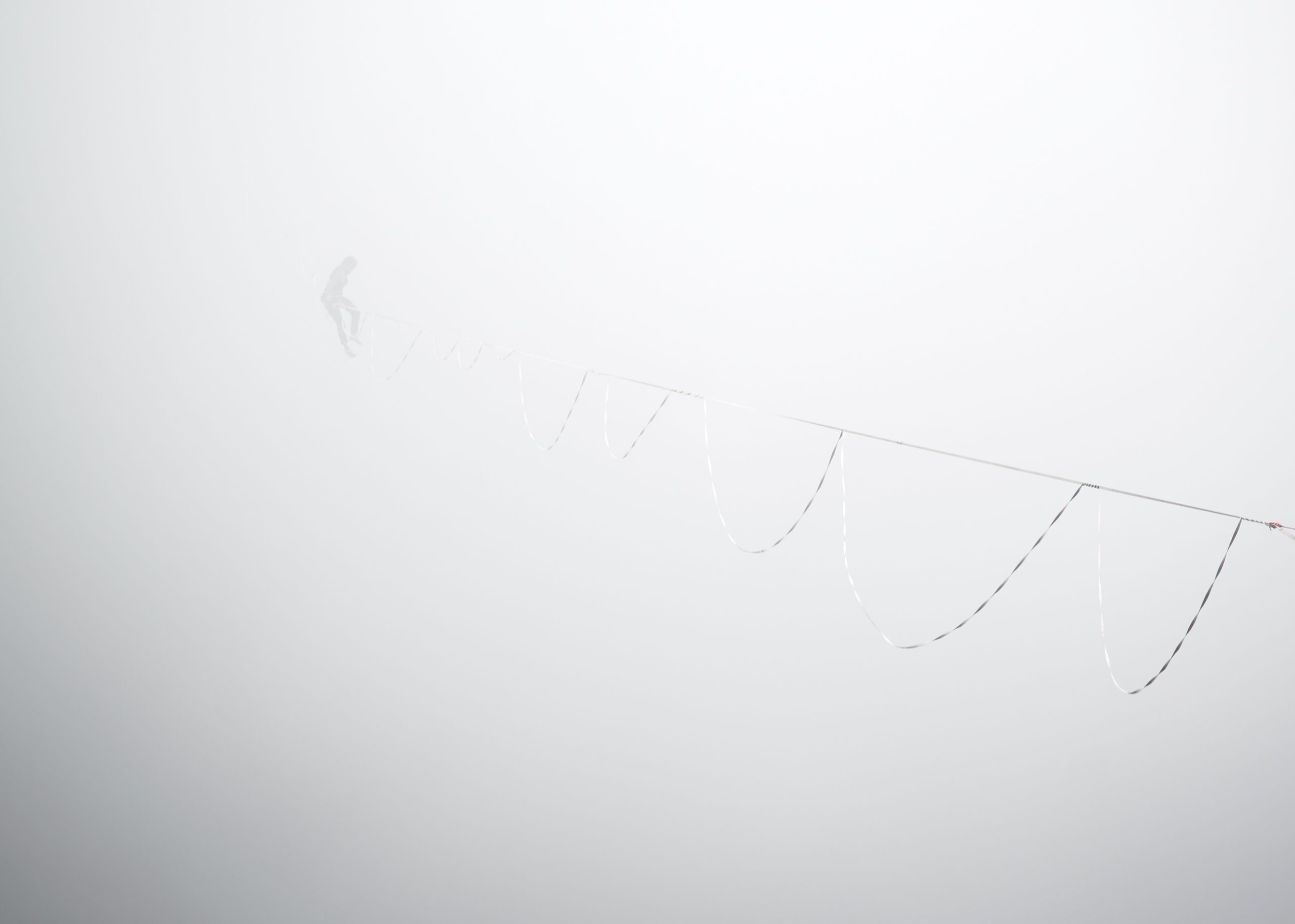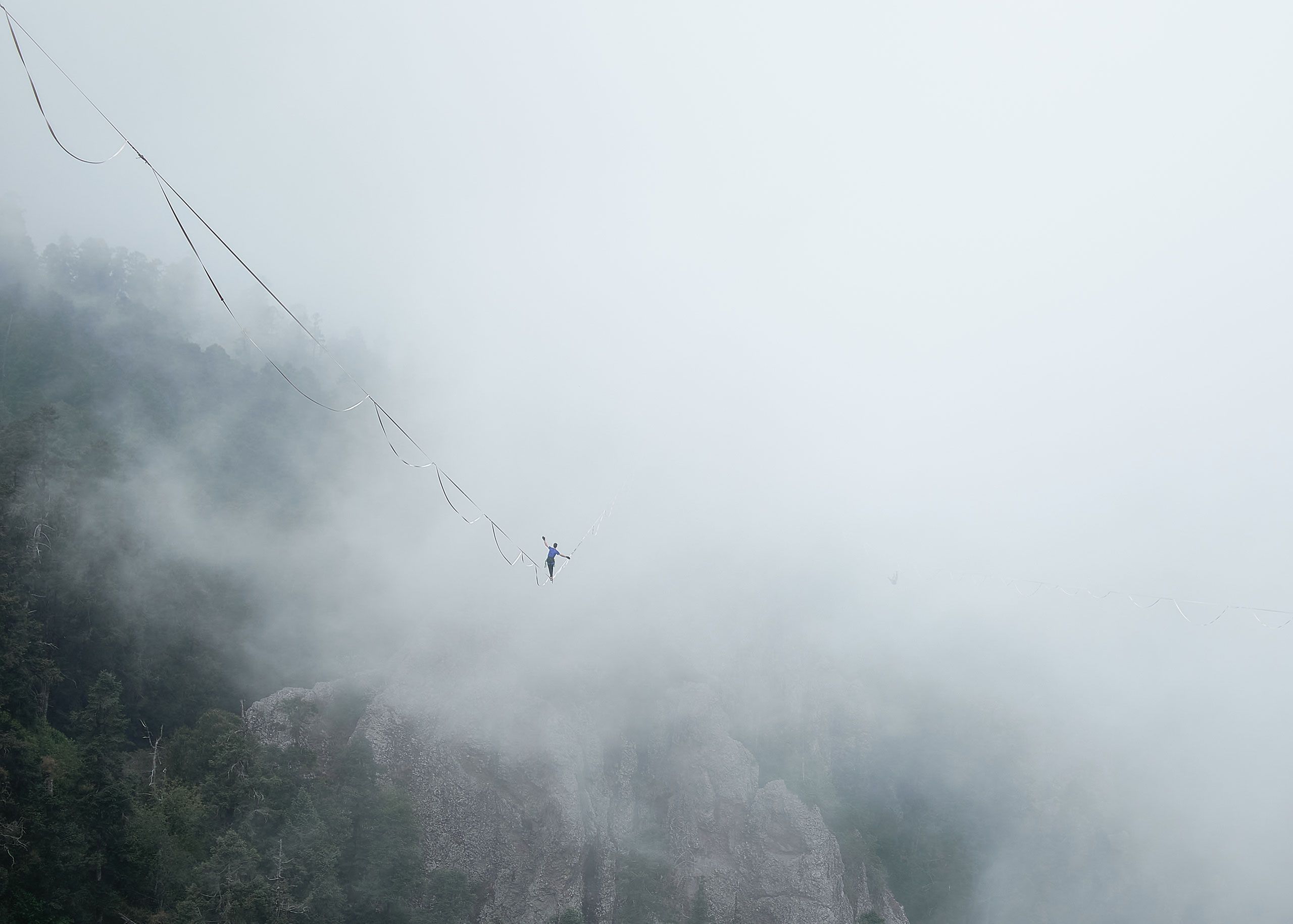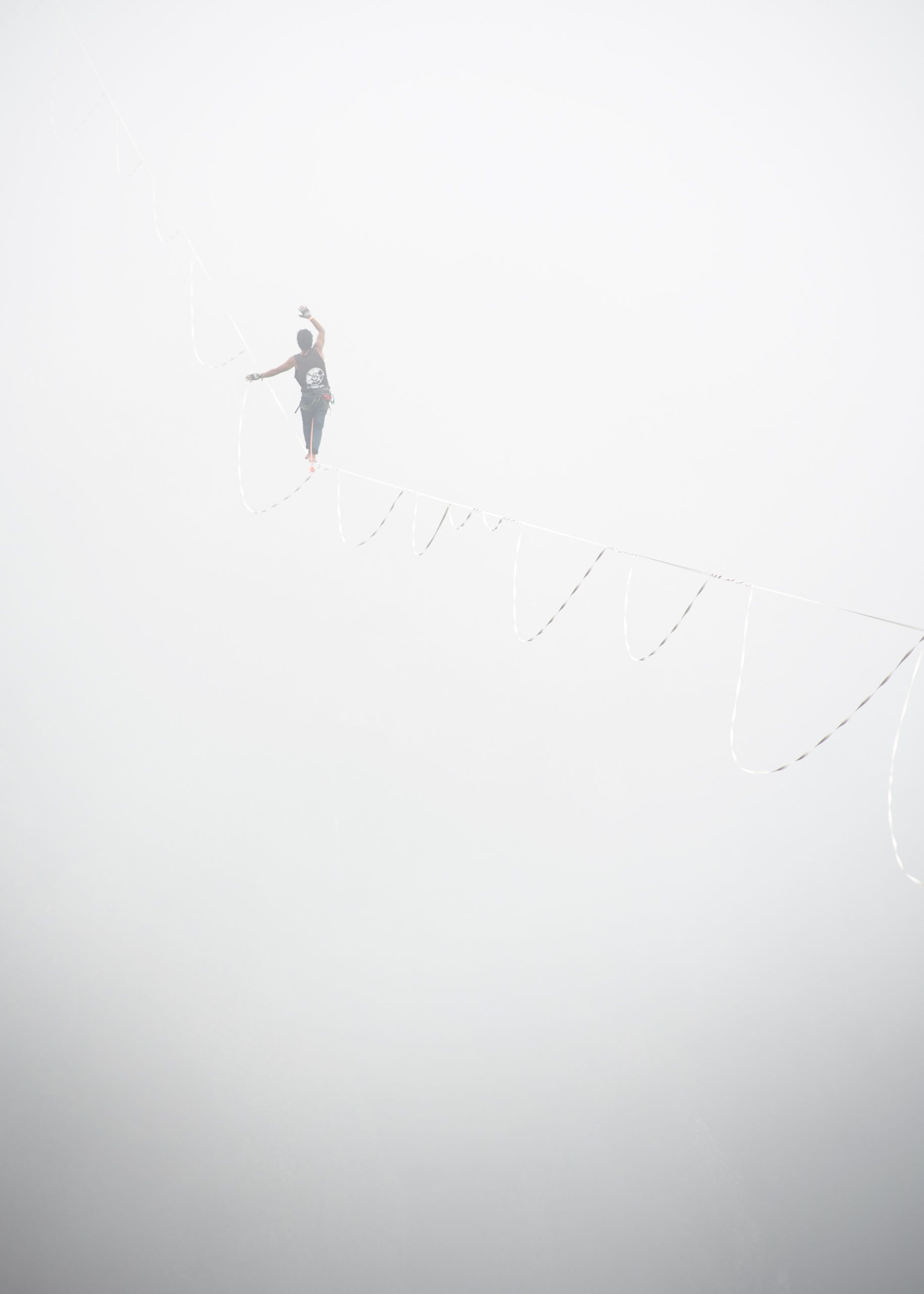 Wearing my harness and slings, I walked secured by the dangerous areas in order to look for new frames and athletes walking their lines. I was taking some picture to Amy, a new friend that was trying to walk her line when a huge cloud started to surrounding us. Just behind me the action was going on, 2 guys were trapped by this cloud and suddenly they disappeared. They started to celebrate with loudly screams this experience and I couldn’t believe what I have in my camera.